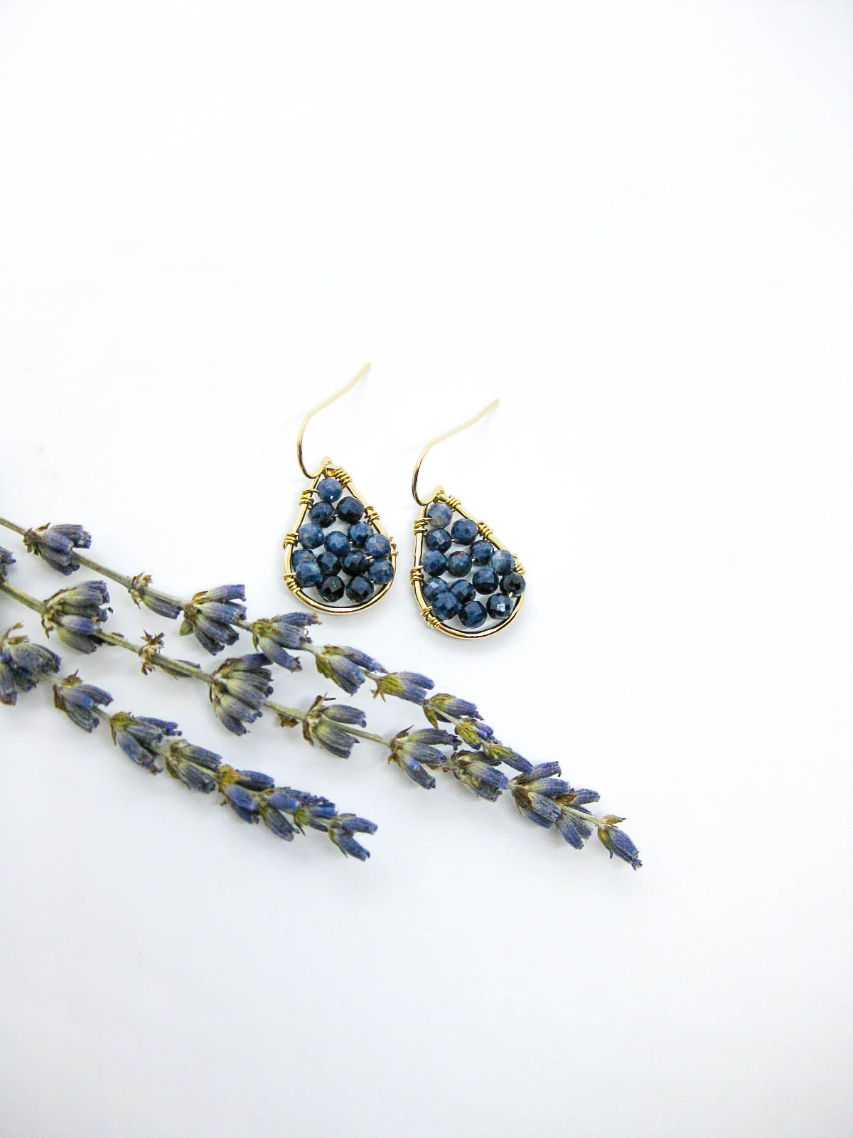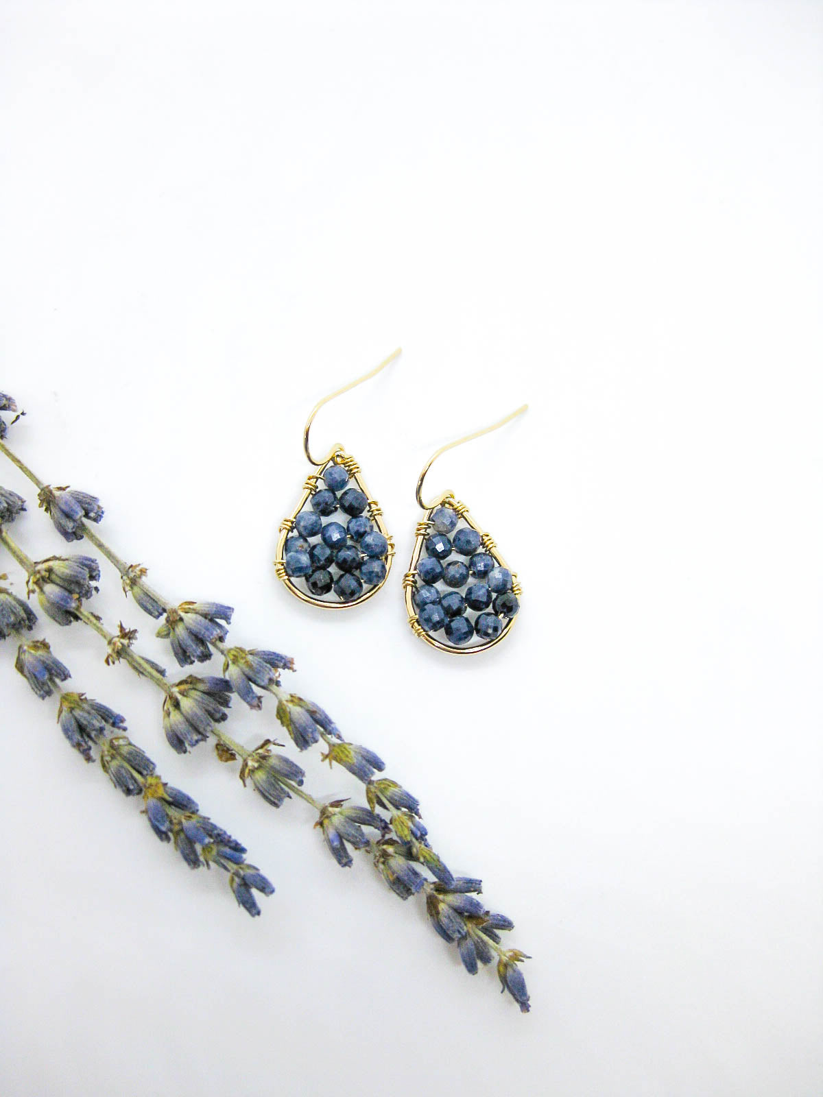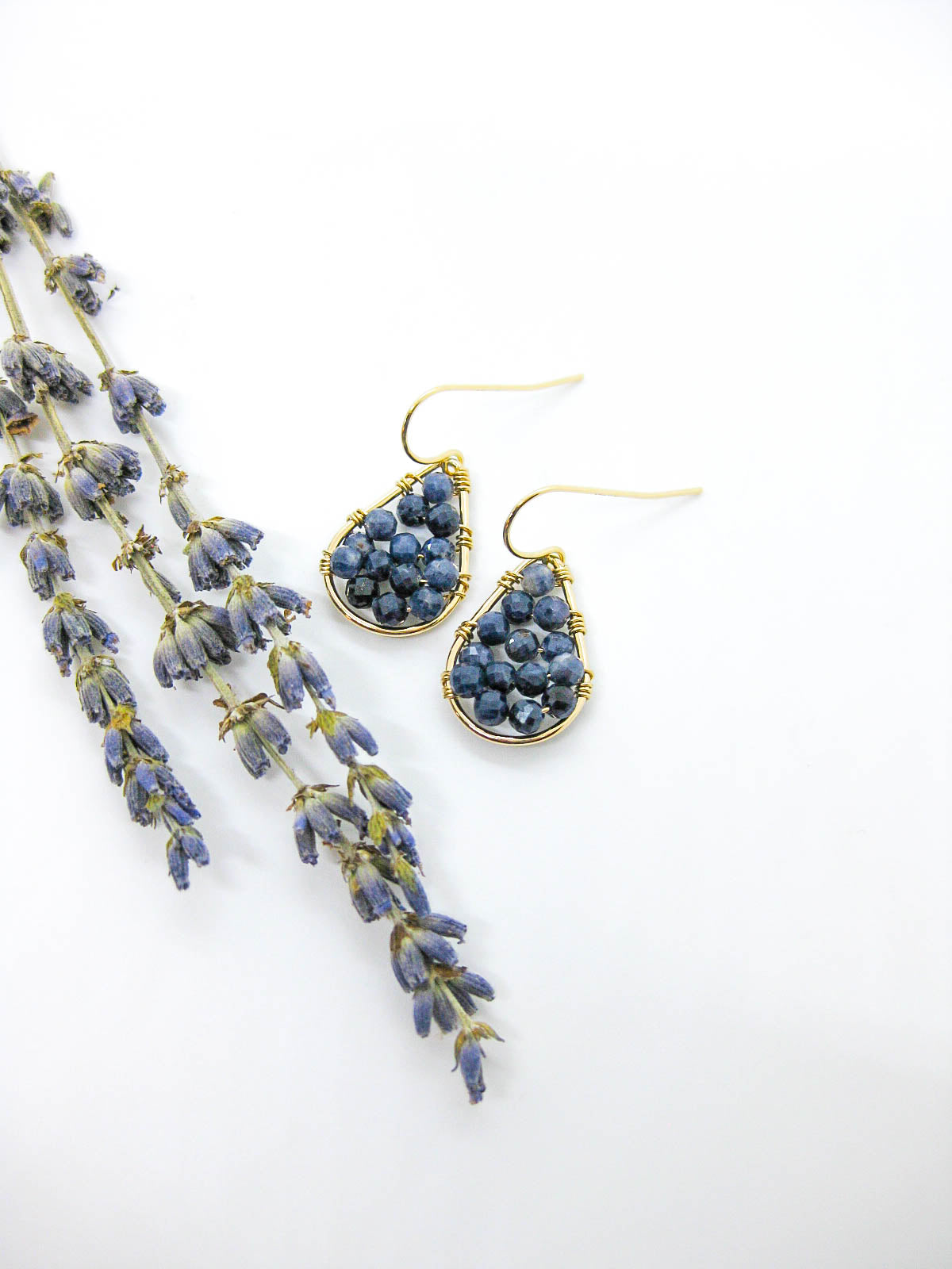 - Sapphire gemstone beaded drop earrings in sterling silver or 14k gold filled