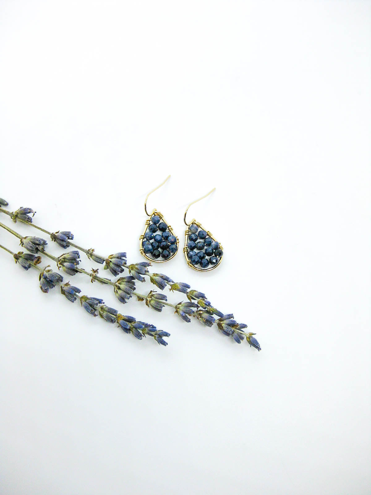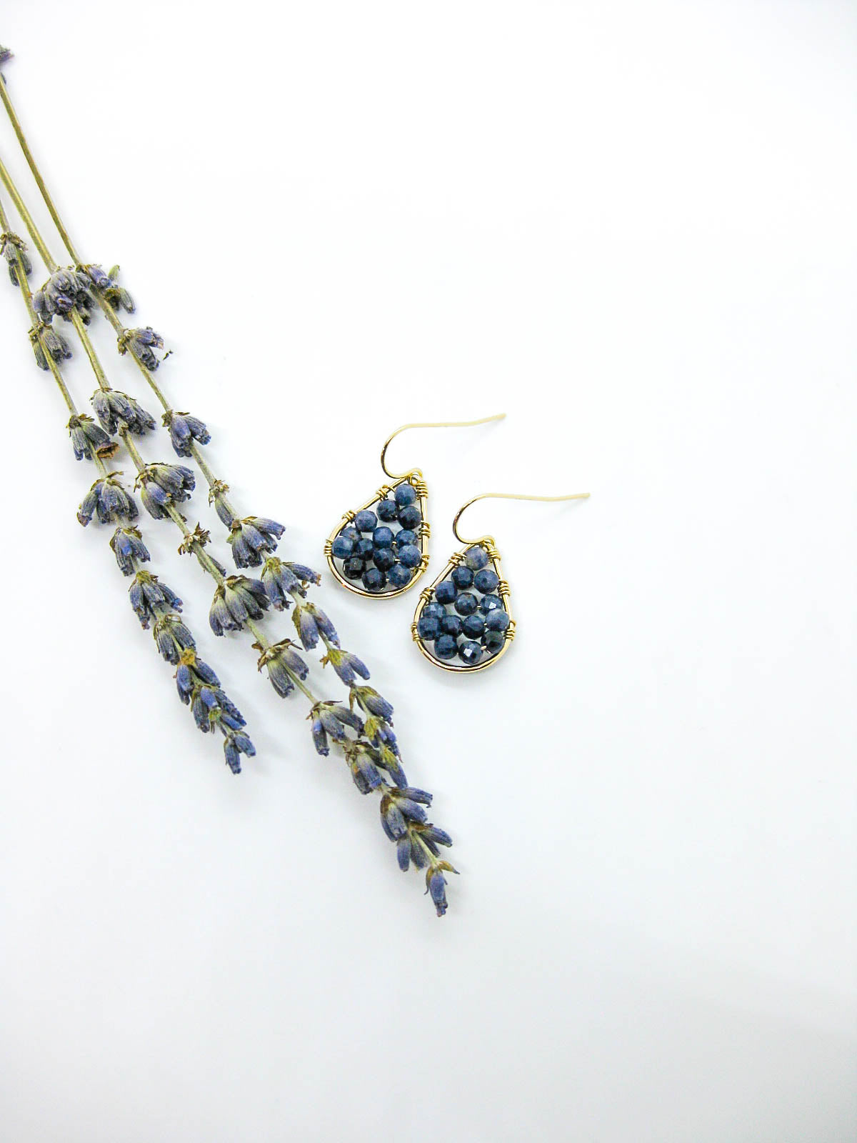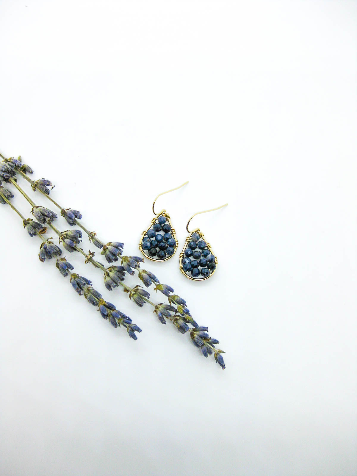 - Sapphire gemstone beaded drop earrings in sterling silver or 14k gold filled