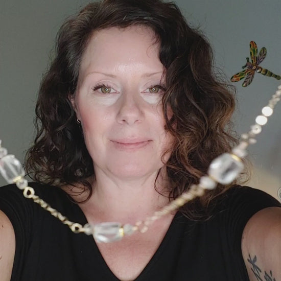 - Quartz crystal gemstones with sterling silver or 14k gold filled